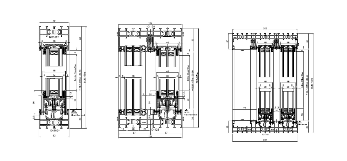 - Construction depths: 62 mm 1-lane, 134 mm 2-lane, 206 mm 3-lane