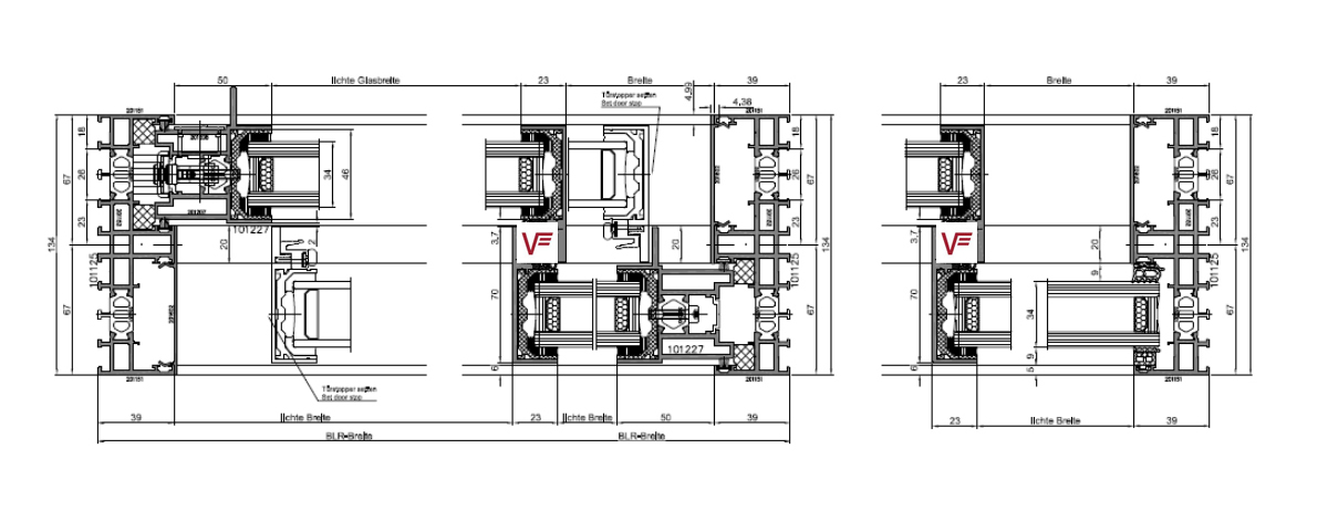 All calculated Uw values in the 2-lane variant (S/F) with 134 mm construction depth and the standard size of W x H 4,000 x 2,500 mm. Even smaller Uw values for larger elements. Alternatively, in the variants VENTURA V3 and VENTURA V4 on request.